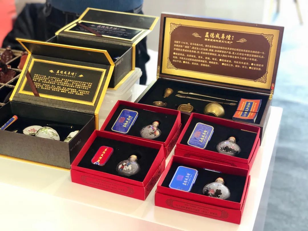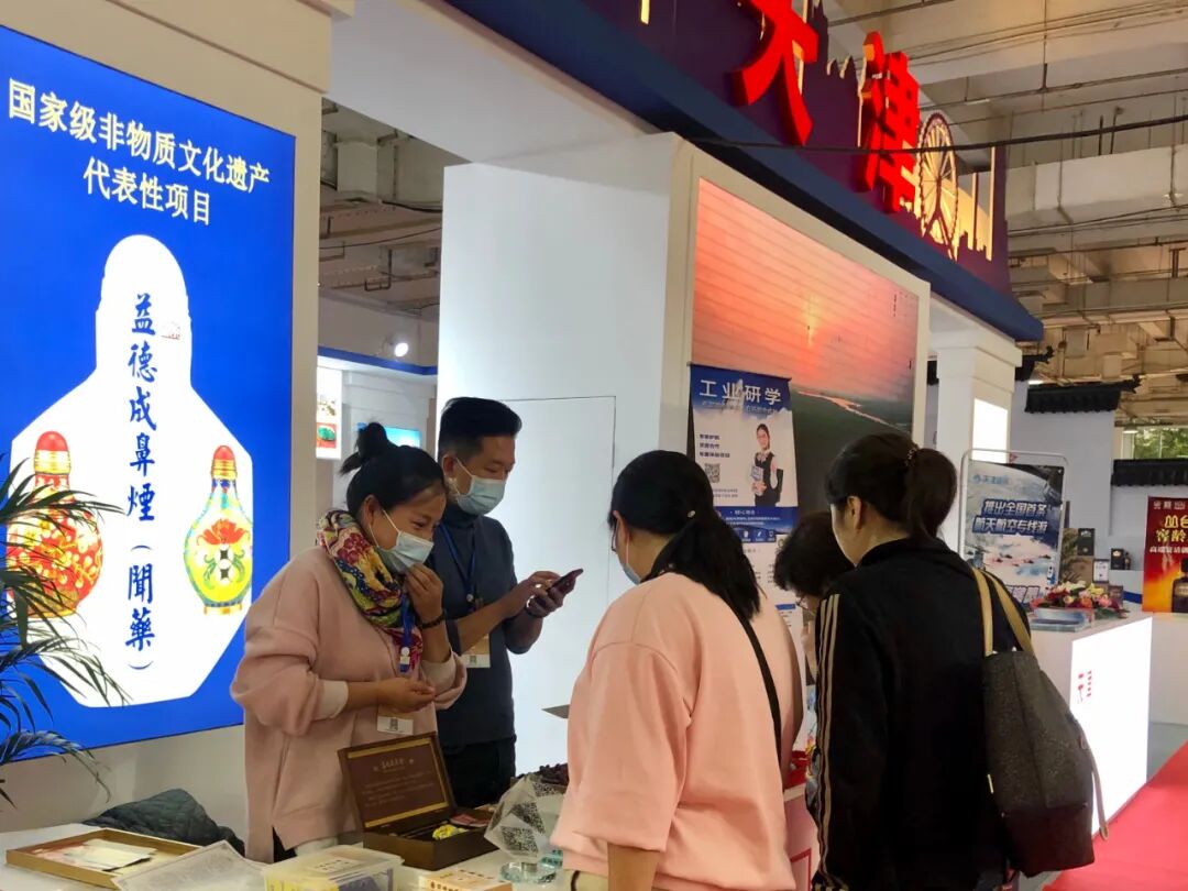 聚集在天津展区“益德成鼻烟”展位前的观众。
