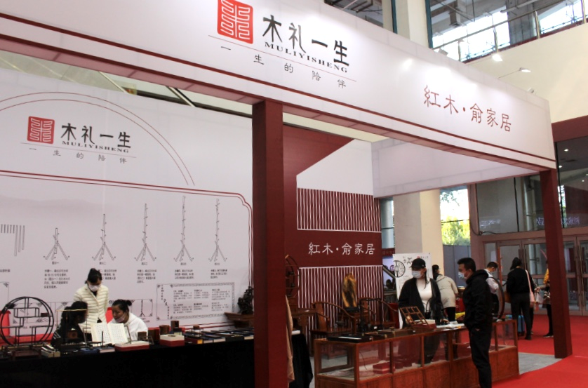 红木·俞展区有中式传统红木家具、新中式家具、文玩饰品等,展品主要以精品刺猬紫檀为原材料,结构巧妙,工艺精湛,神韵独特。
