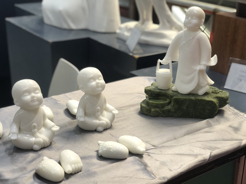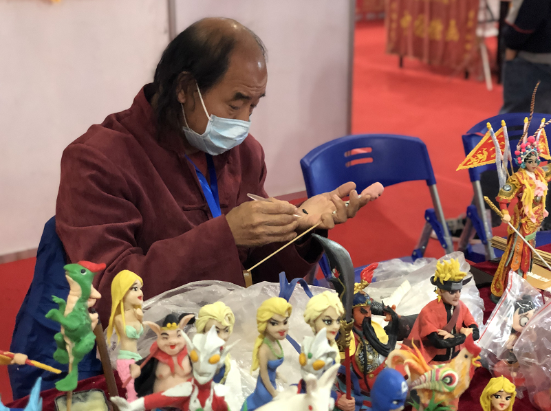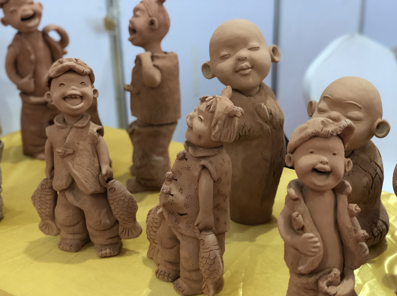 东光县观州淘泥坊展位活灵活现的泥人作品。
