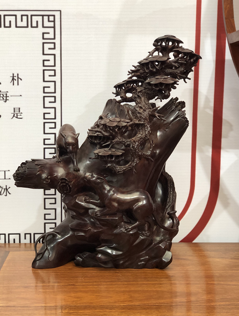 红木·俞展区的小叶紫檀根雕,是展区的镇店之宝。