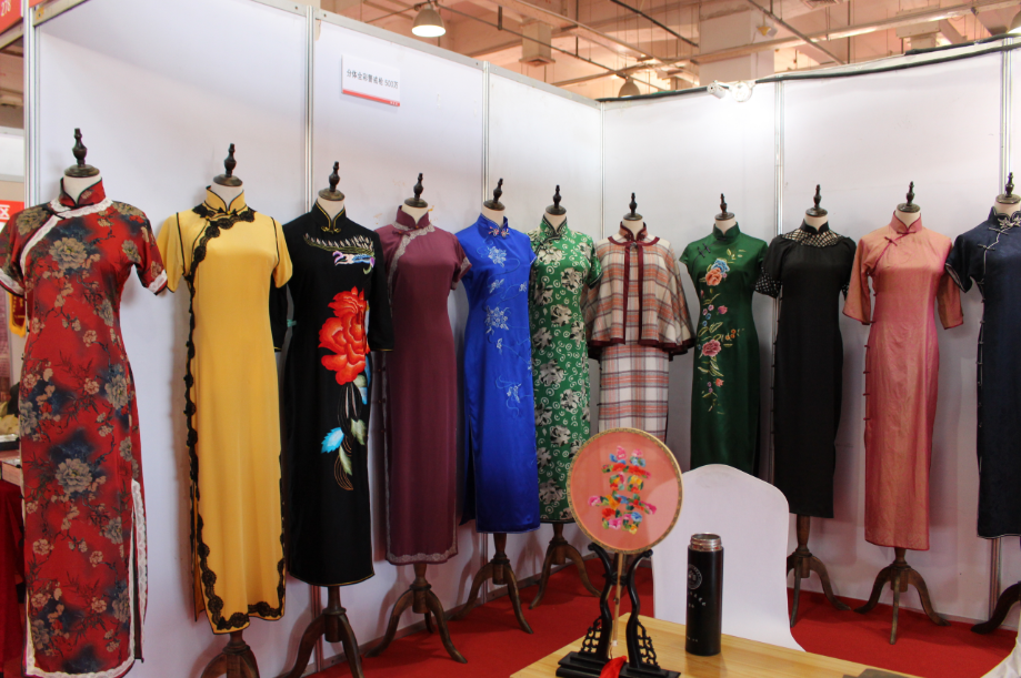 姚福随服装展位精美的旗袍。