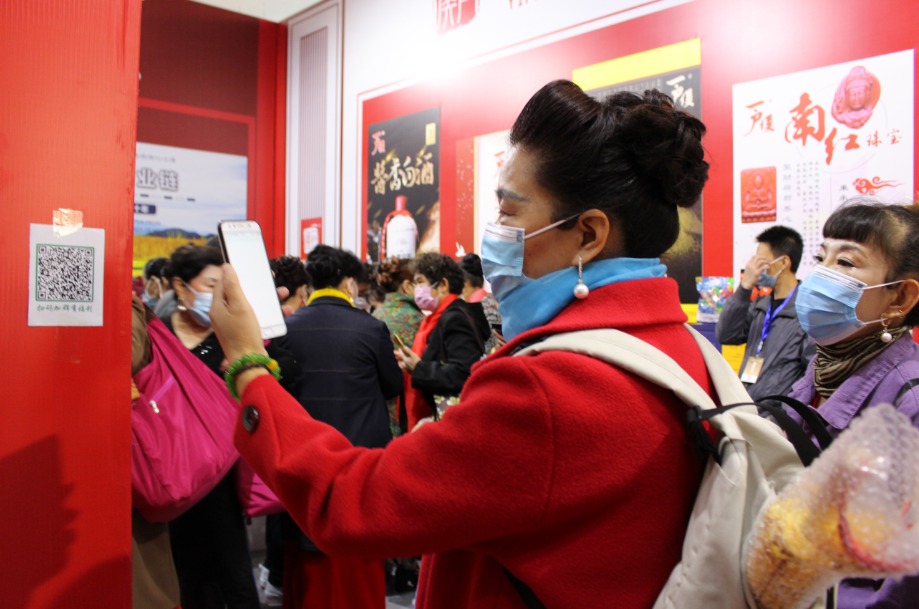 一户侯展区前观众正在扫码参加活动。