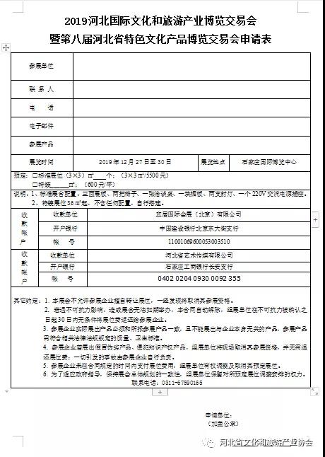 附件:2019河北国际文化和旅游产业博览交易会暨第八届河北省特色文化产品博览交易会申请