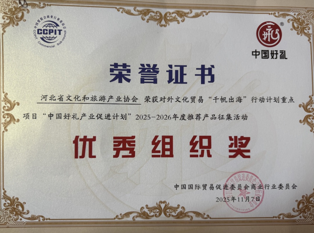 该计划以中国传统文化元素为根基,通过创意设计赋能,推动文化创意商品高质量发展,致力于促进中国文化产品与服务开拓海内外市场,提升中华文化影响力。此次获奖,是鼓励,更是动力。我会将继续发挥桥梁与平台作用,积极推动省内优秀文化产品参与“中国好礼”等国字号计划,助力河北文创“出海扬帆”,为文化强省、文化强国建设贡献力量。 欢迎更多会员单位与文化企业关注后续征集,共同擦亮“河北文创”名片!